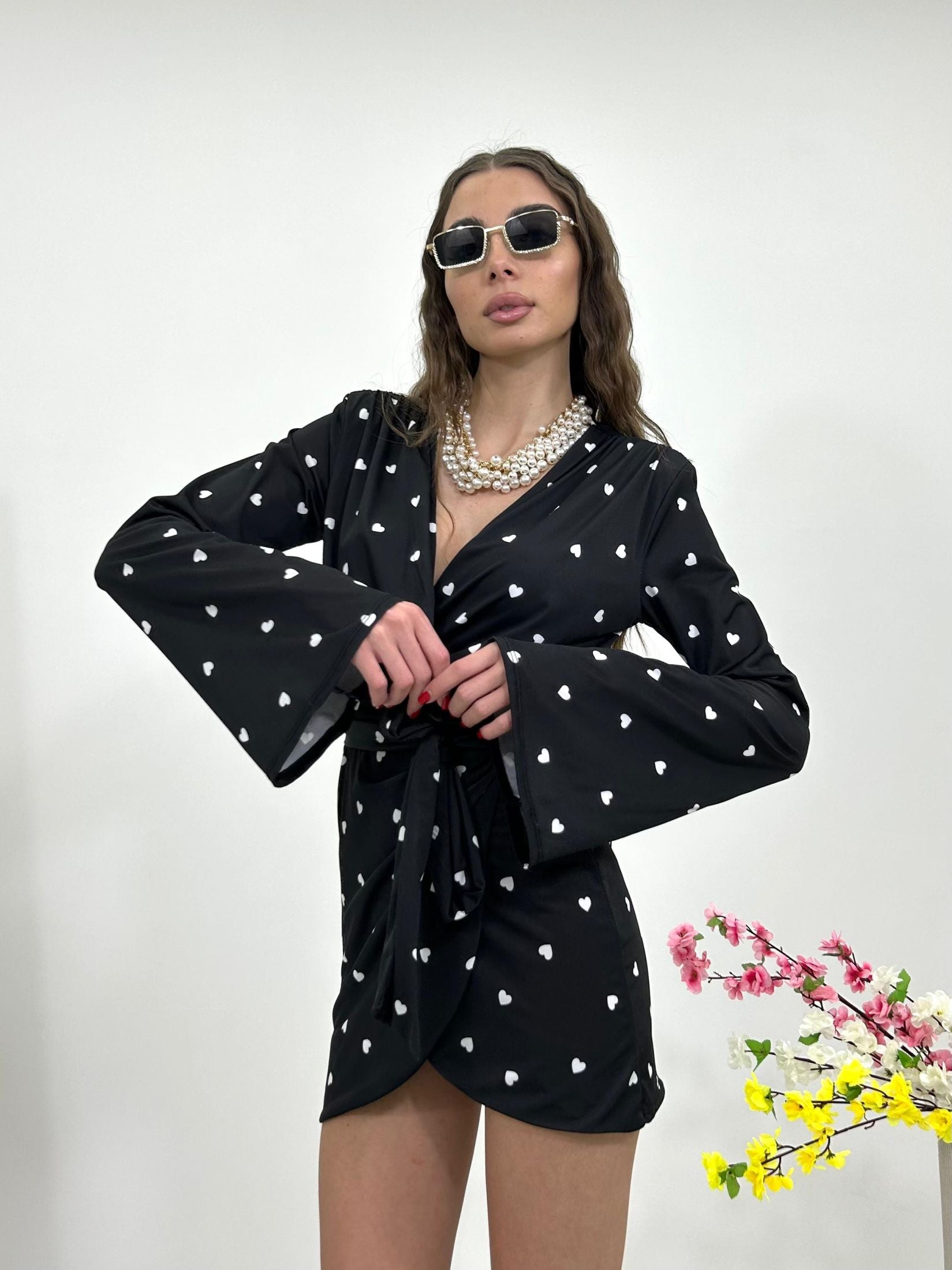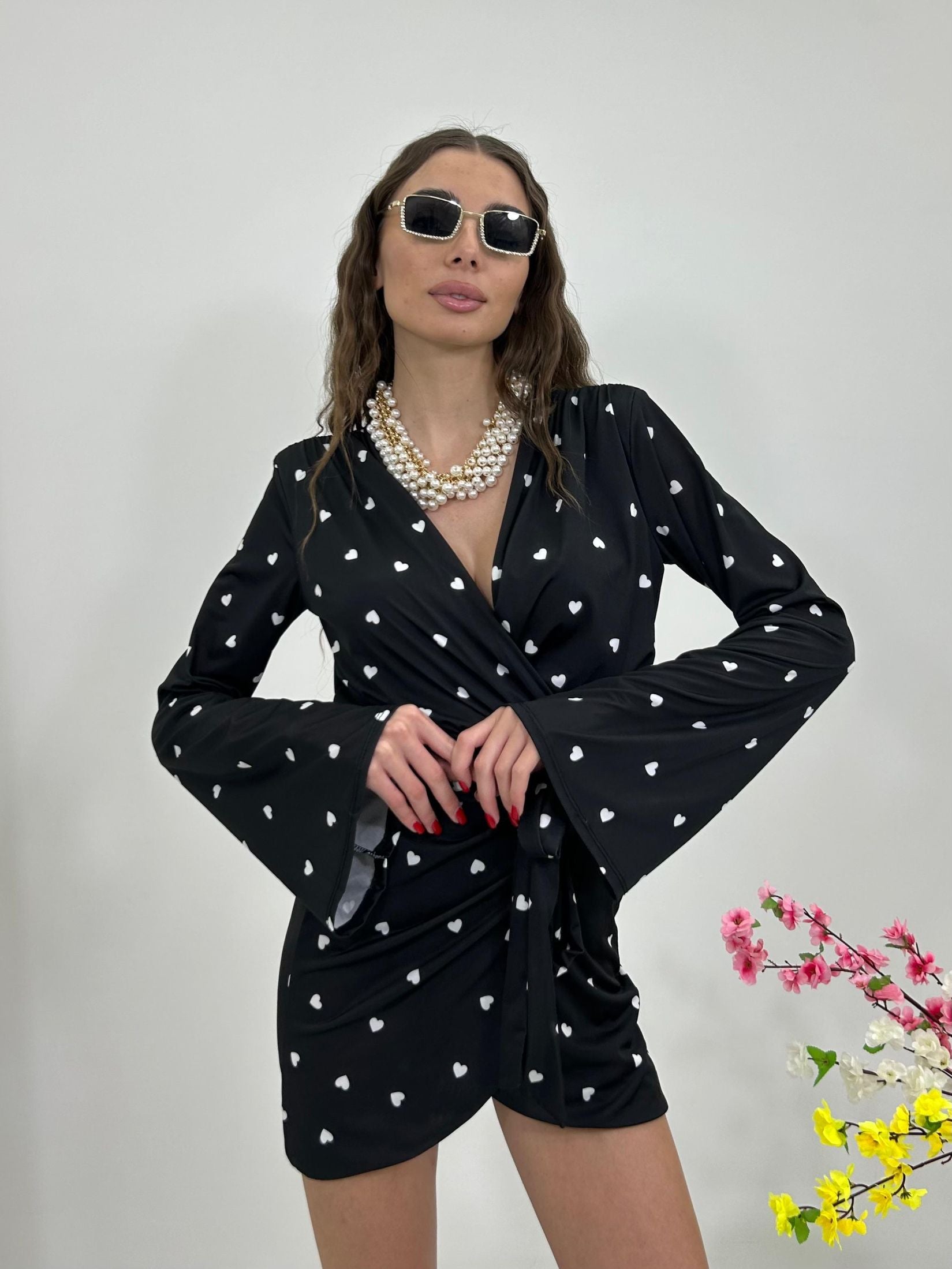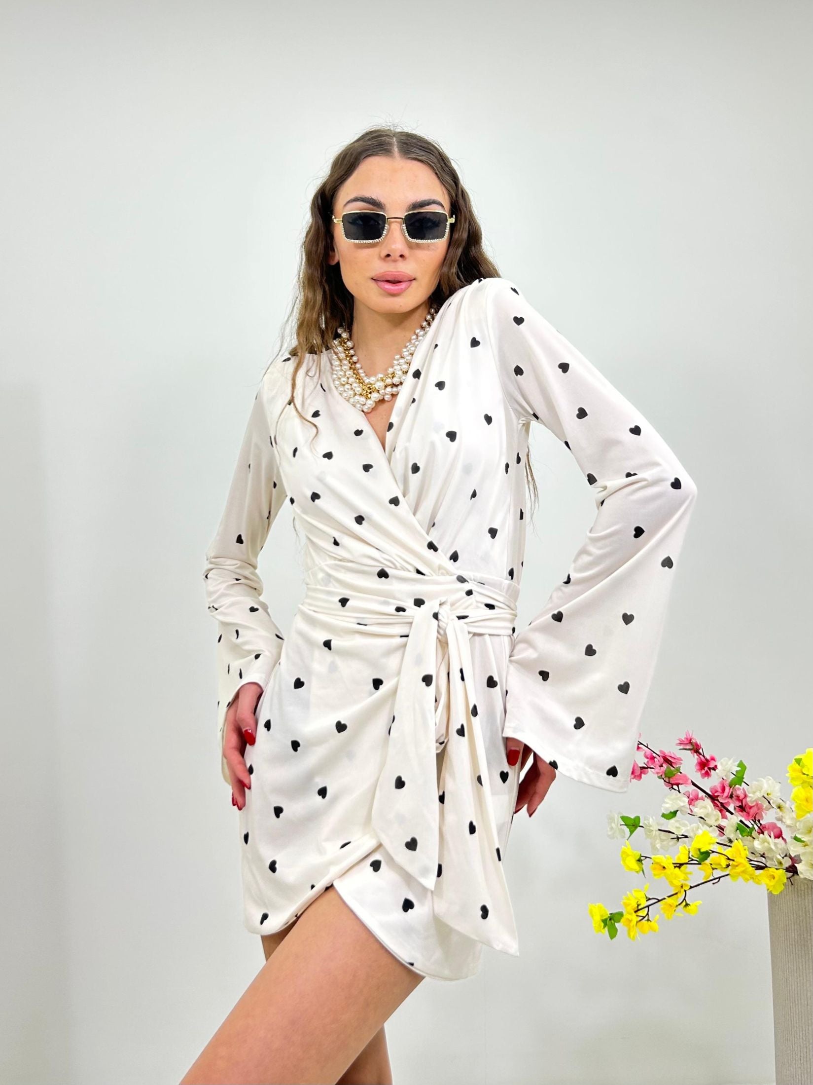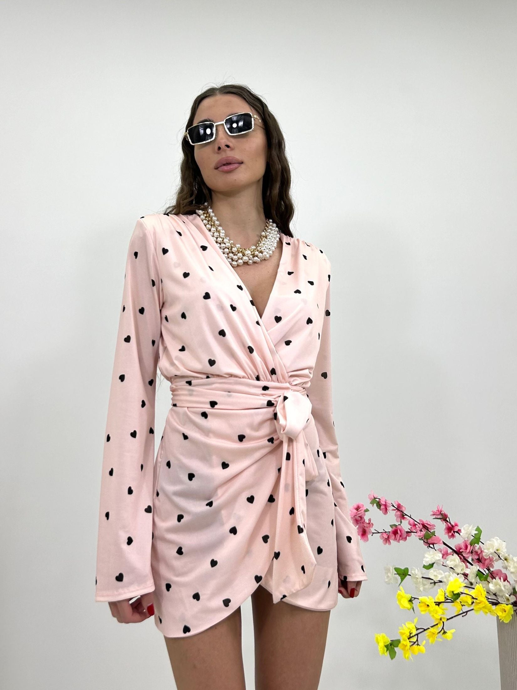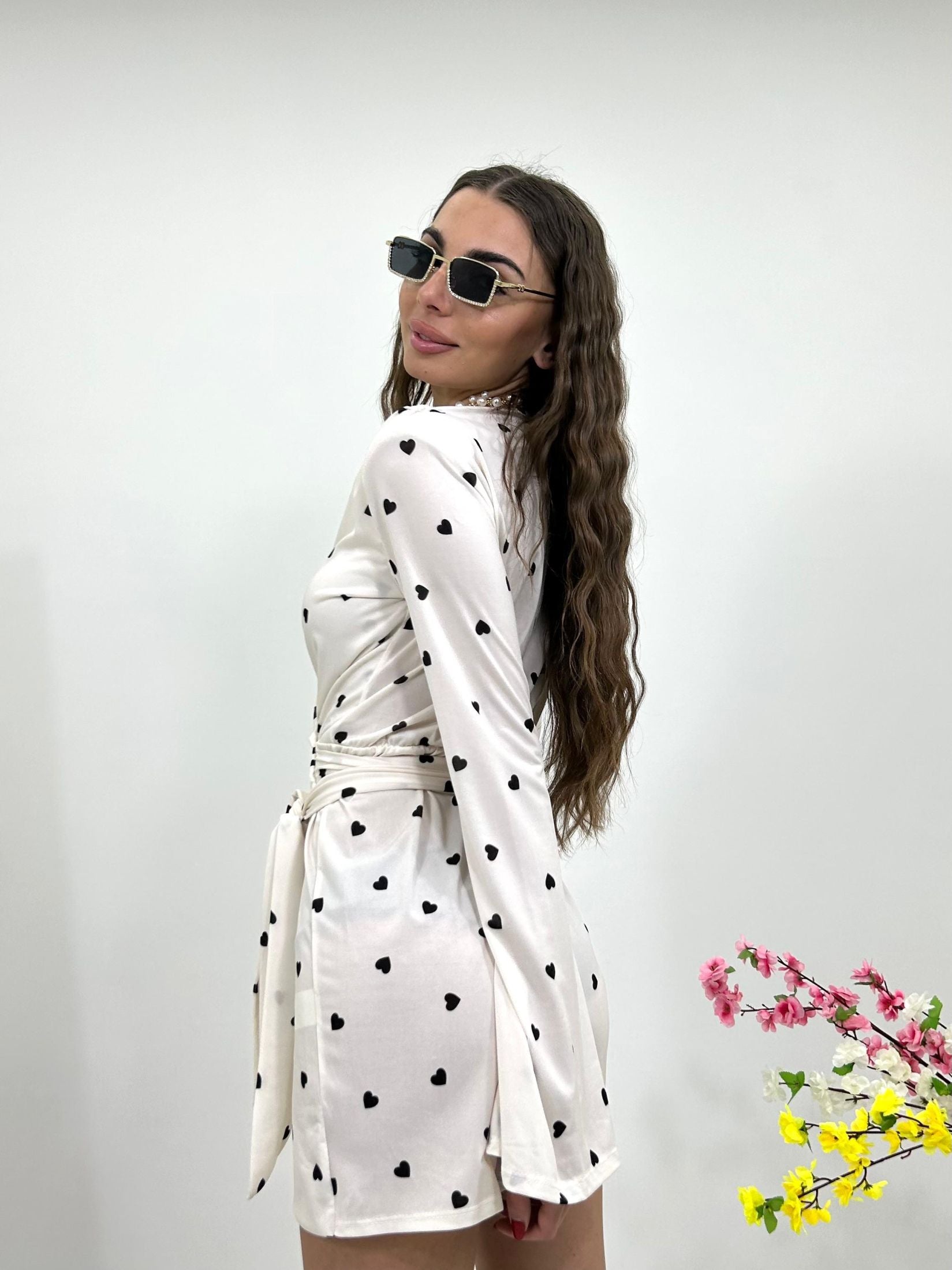 Vestitino in licra chiusura a portafoglio con stampa cuoricini