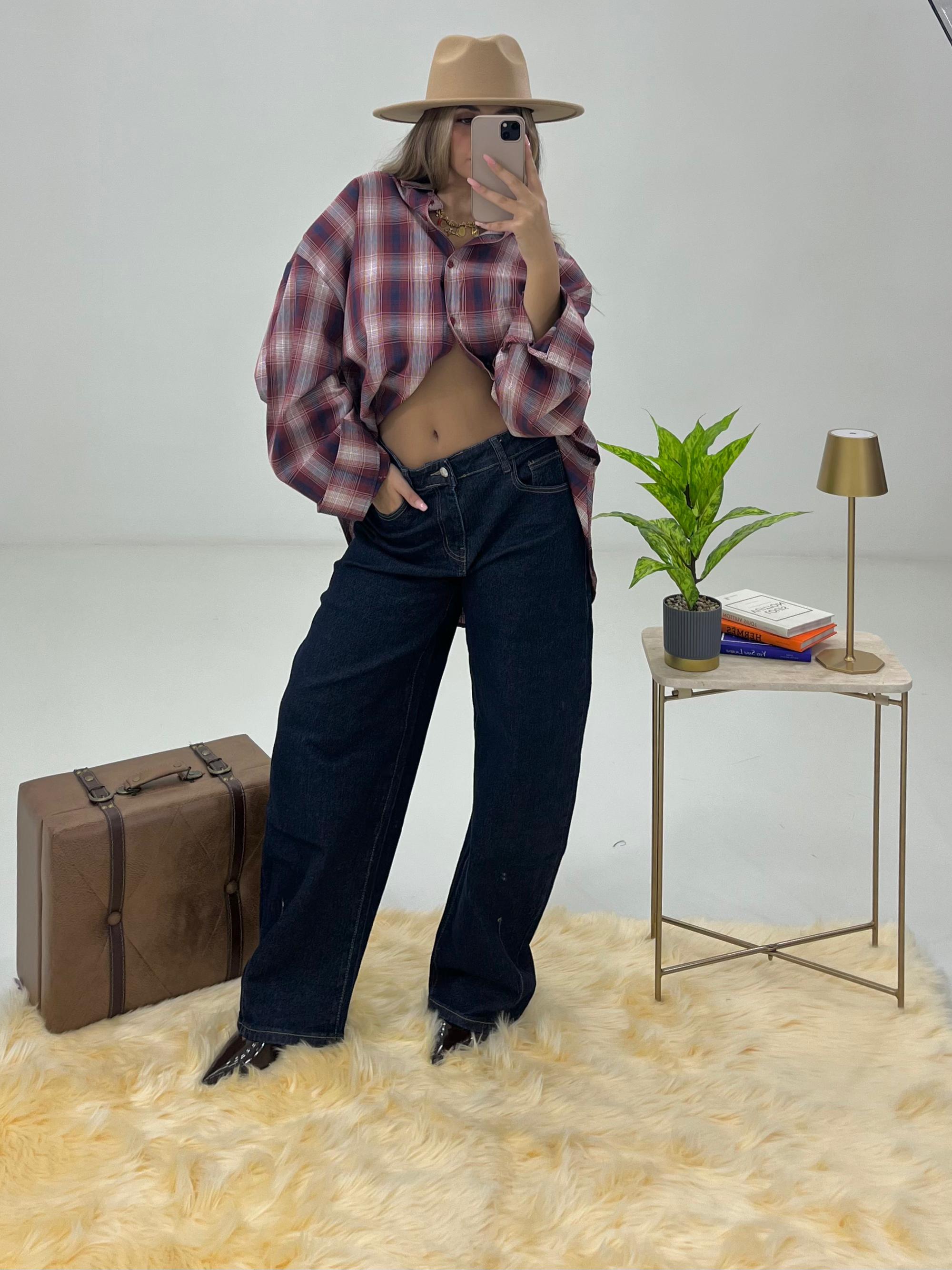 Jeans ballon basic fit denim scuro , con tasche e bottone