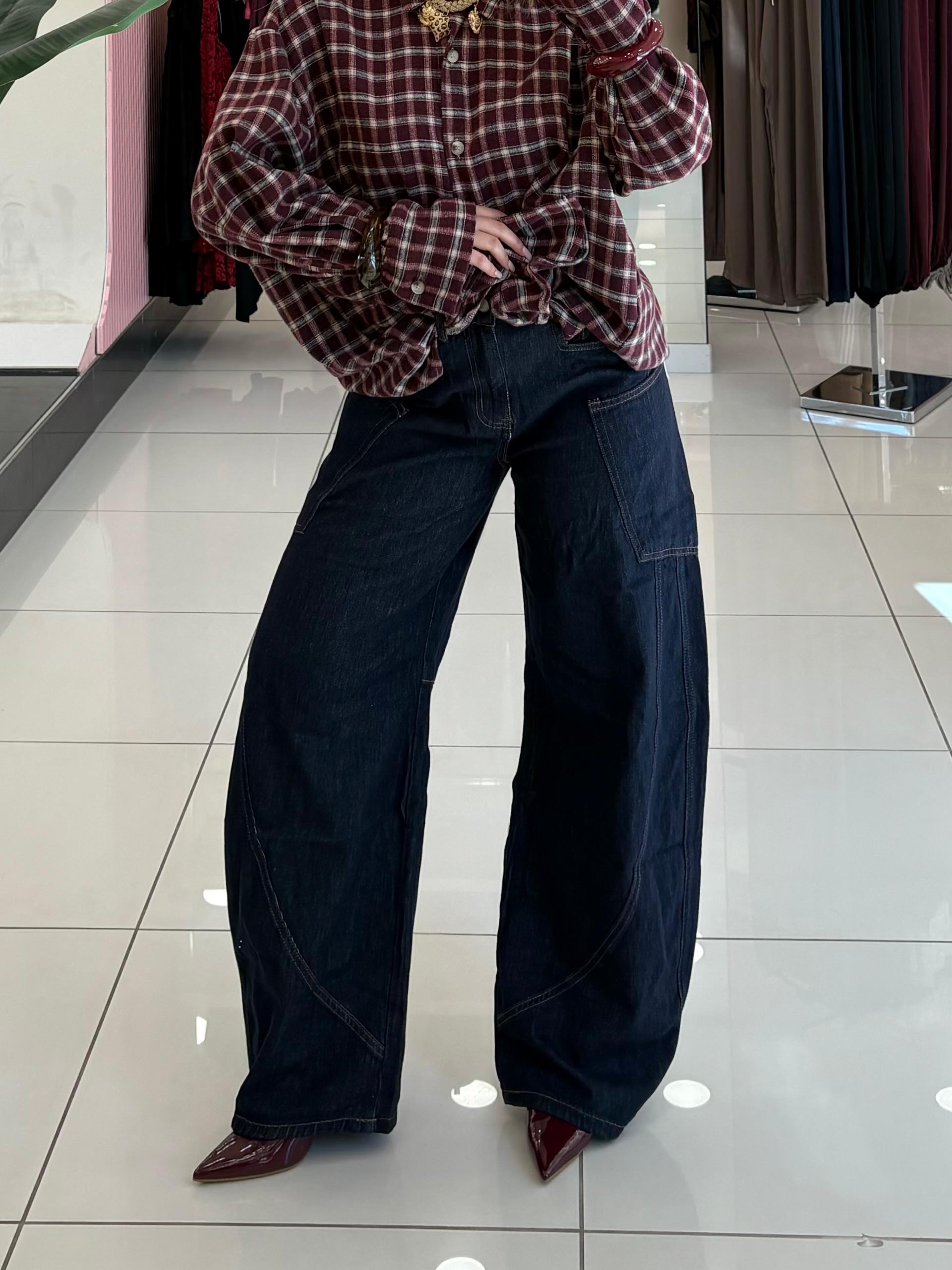 Jeans ballon con tasconi , in denim scuro, tasche zip e bottone