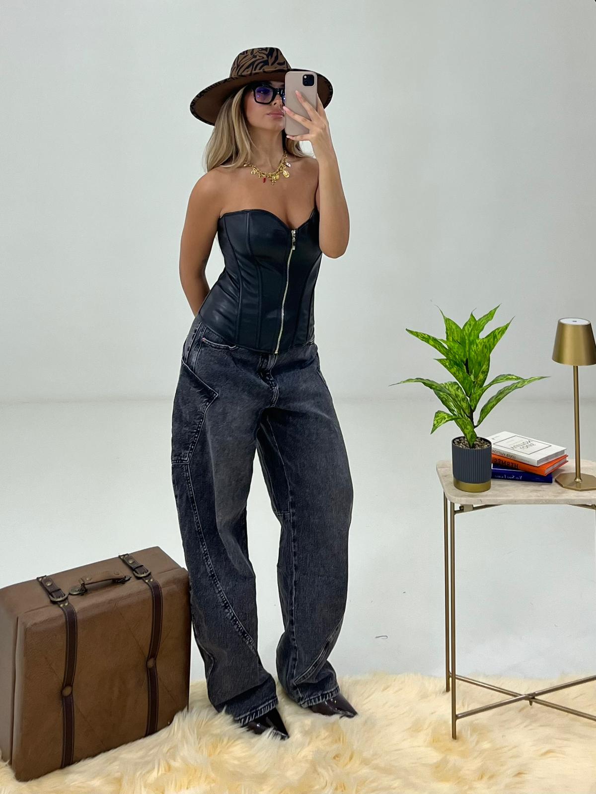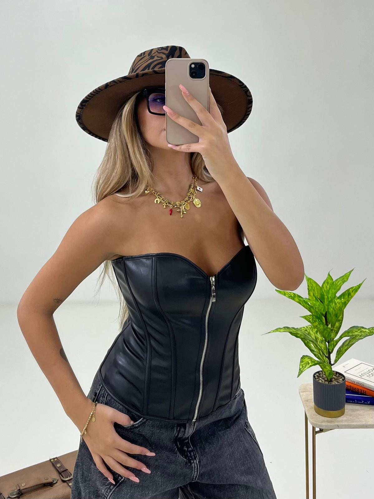 Corpetto ecopelle foderato all'interno con zip anteriore e laccetti posteriori