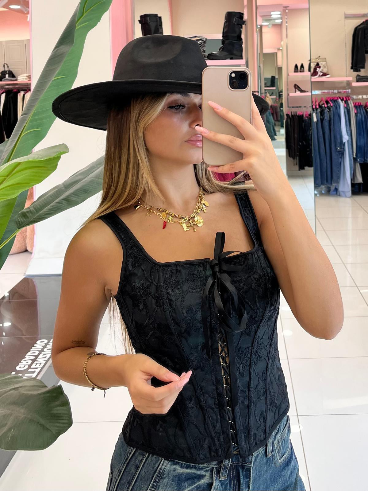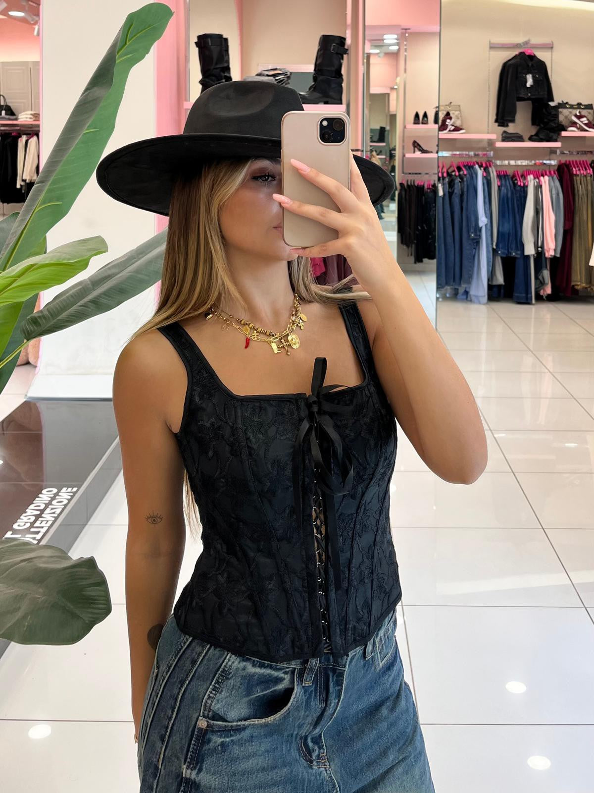 Corpetto ricamato con stringhe regolabili anteriori e posteriori