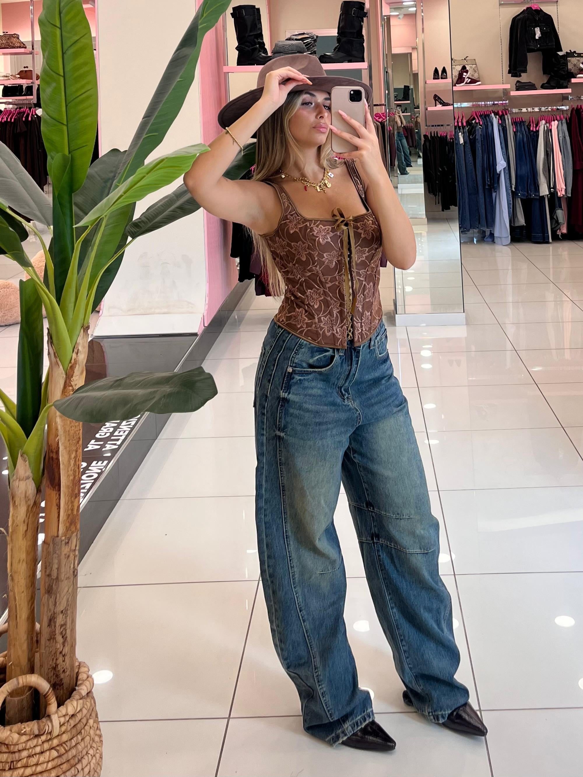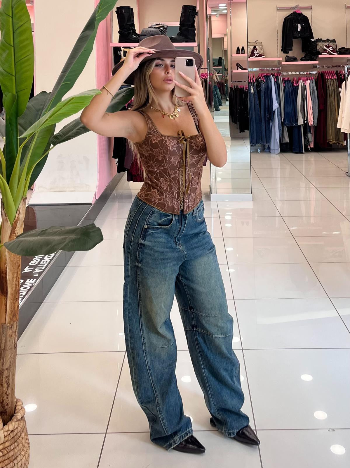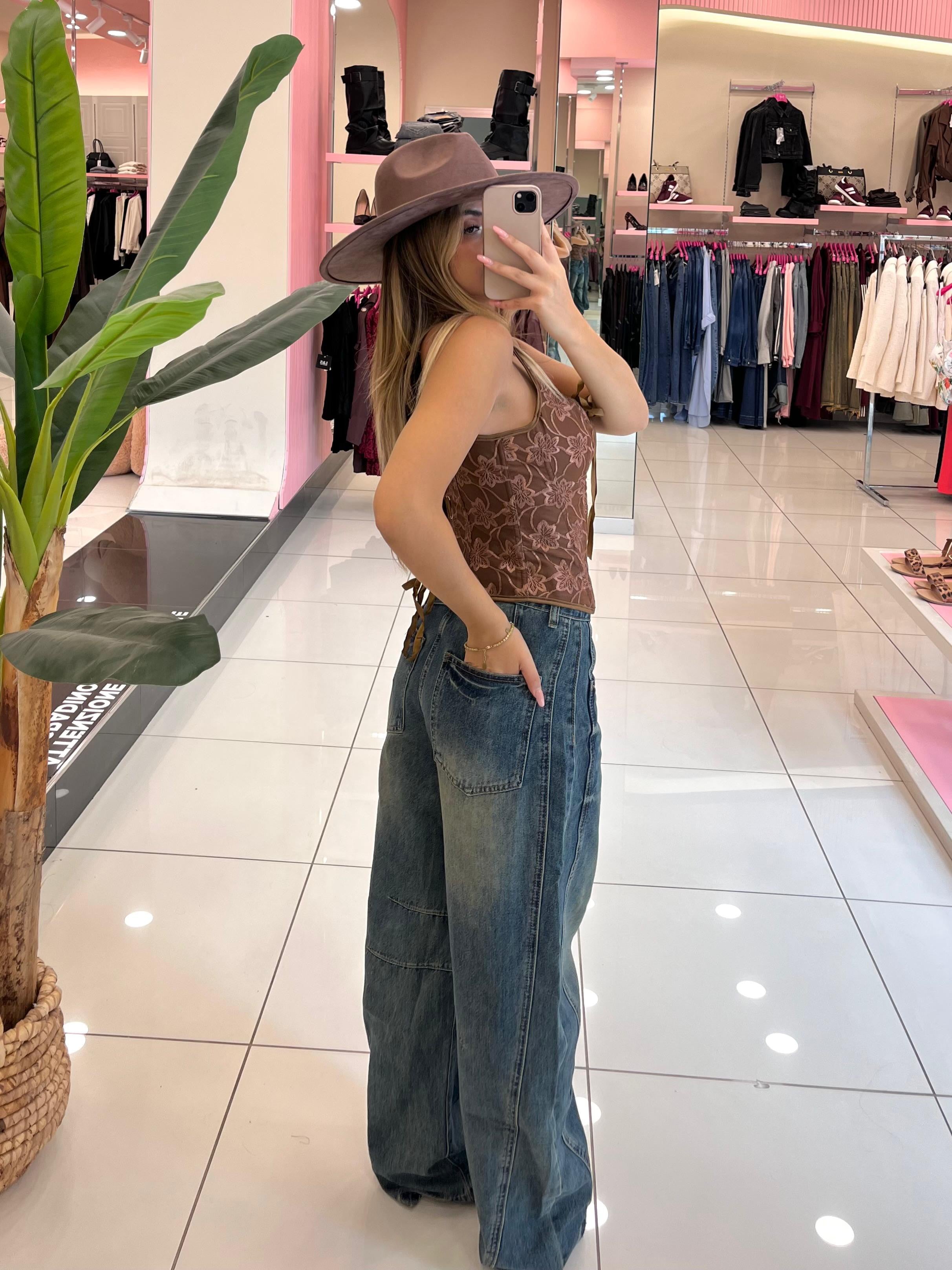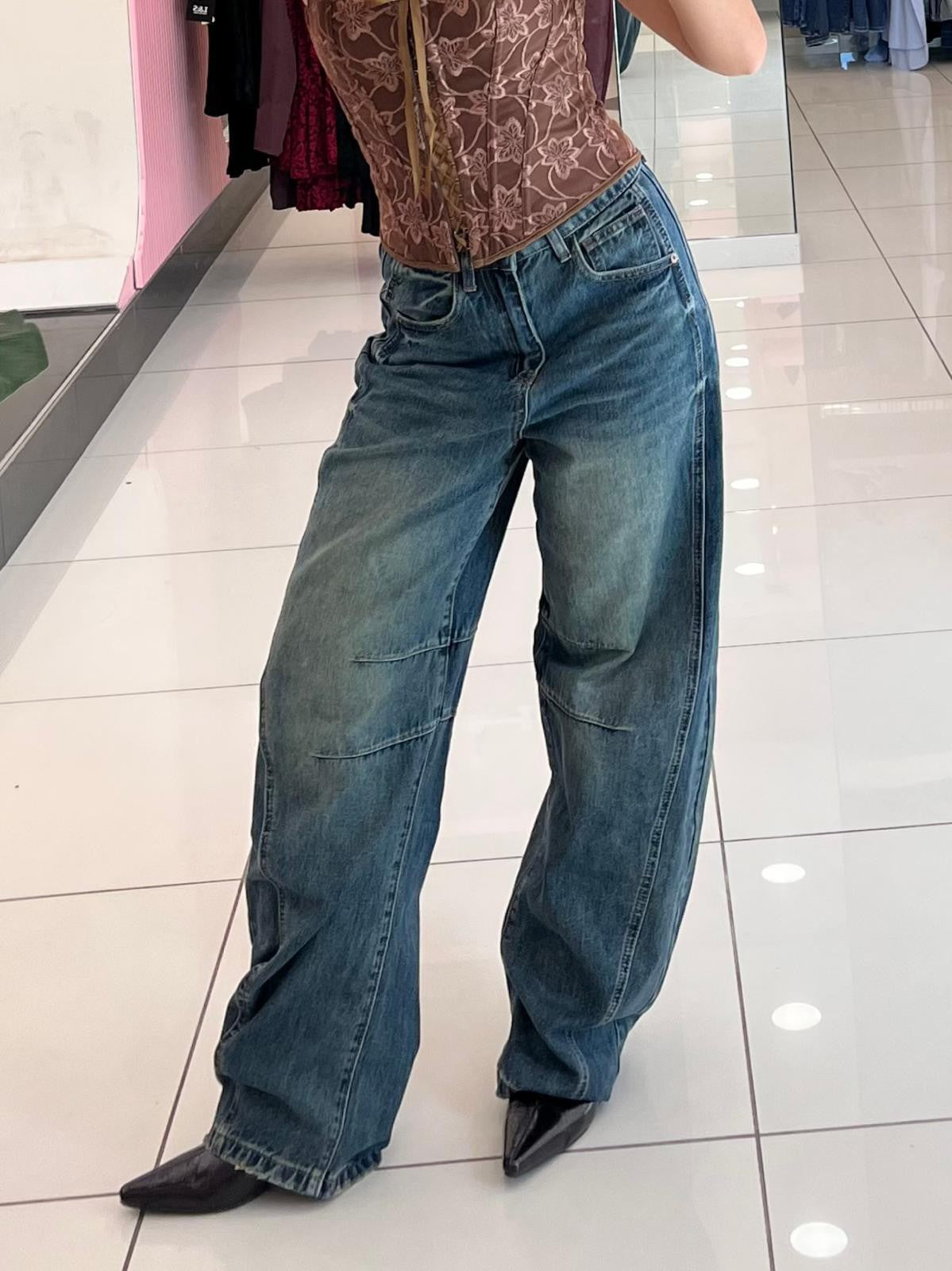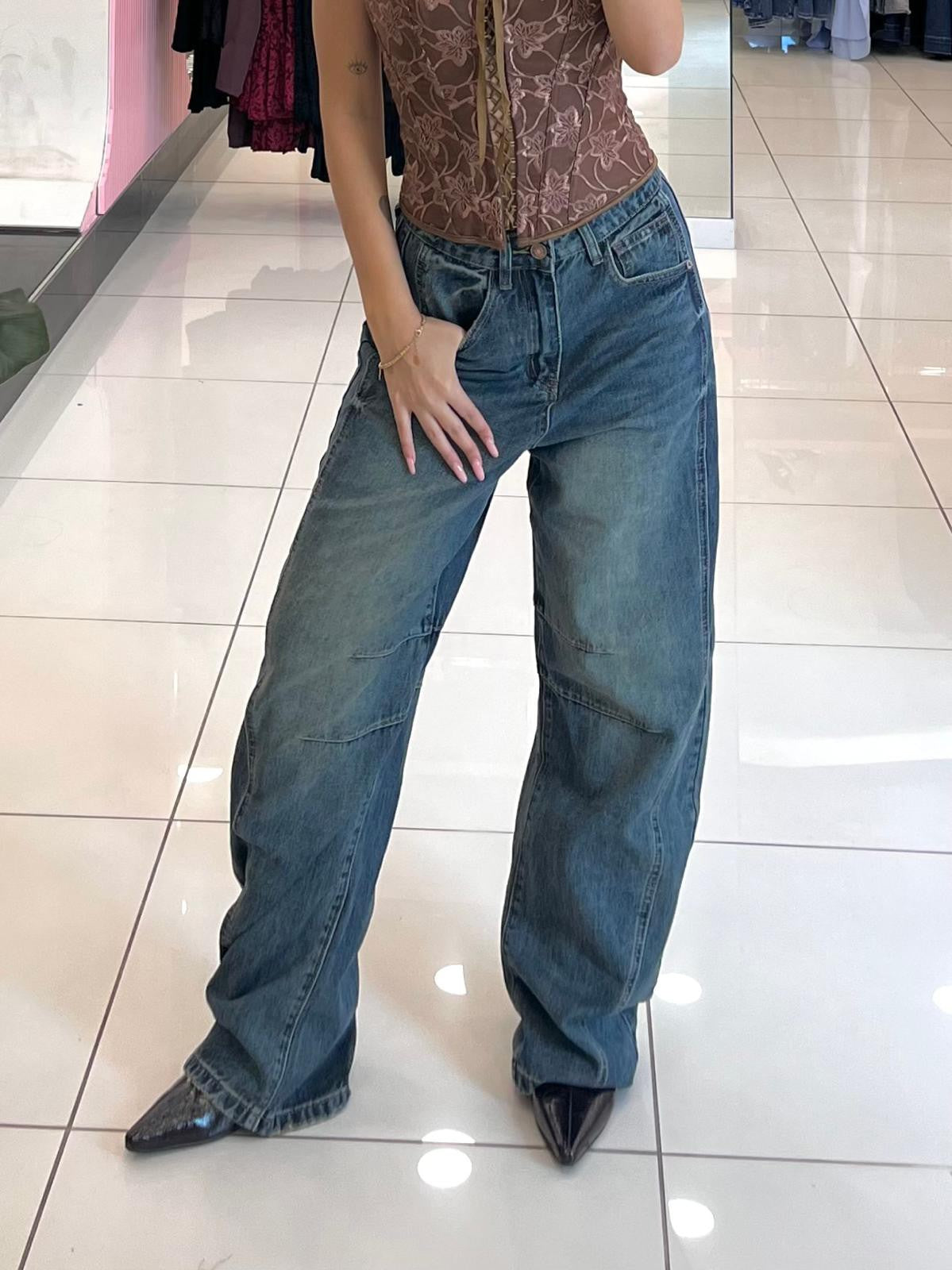 Jeans baggy ballon in denim sfumato con tasche e bottone