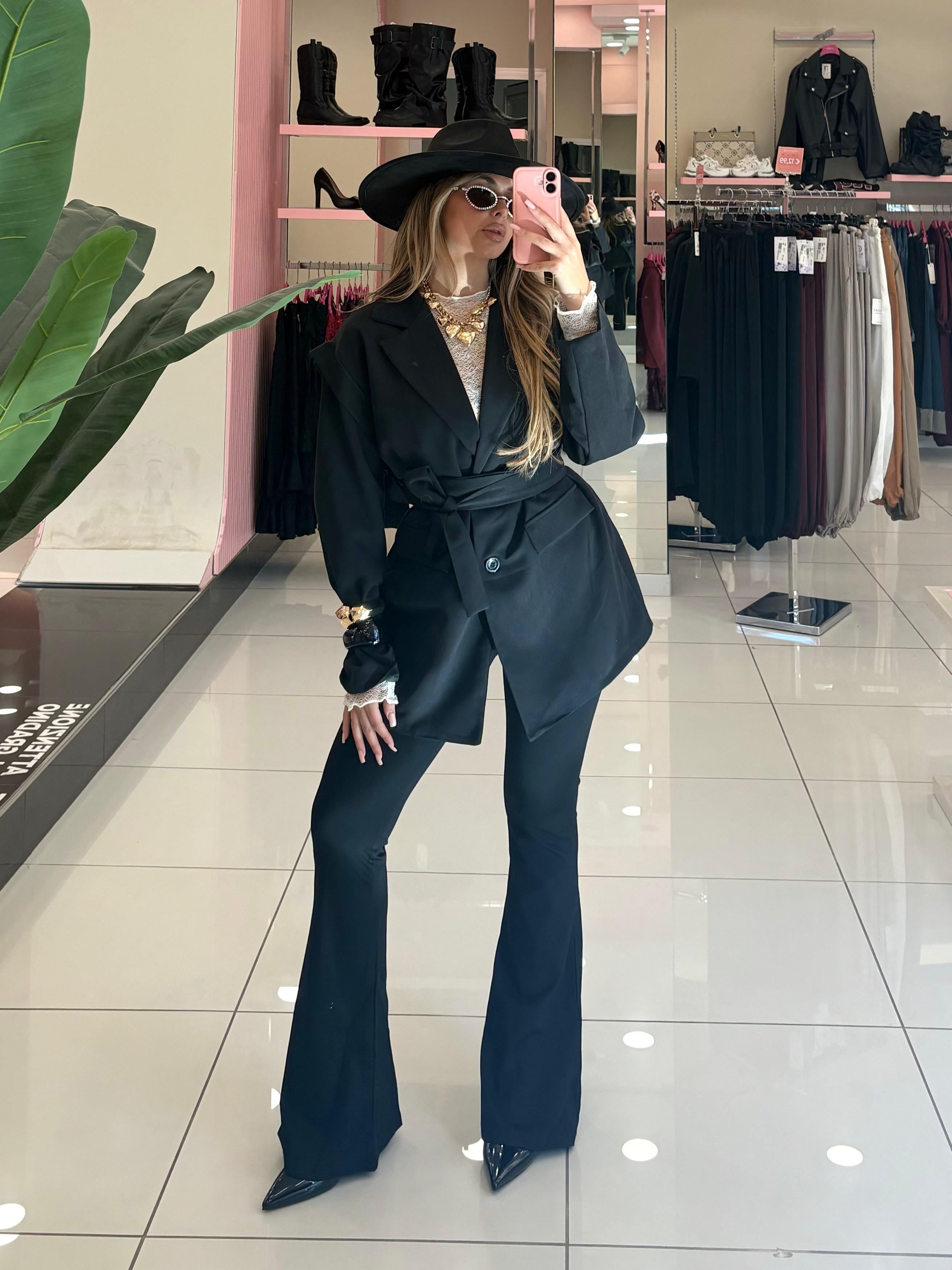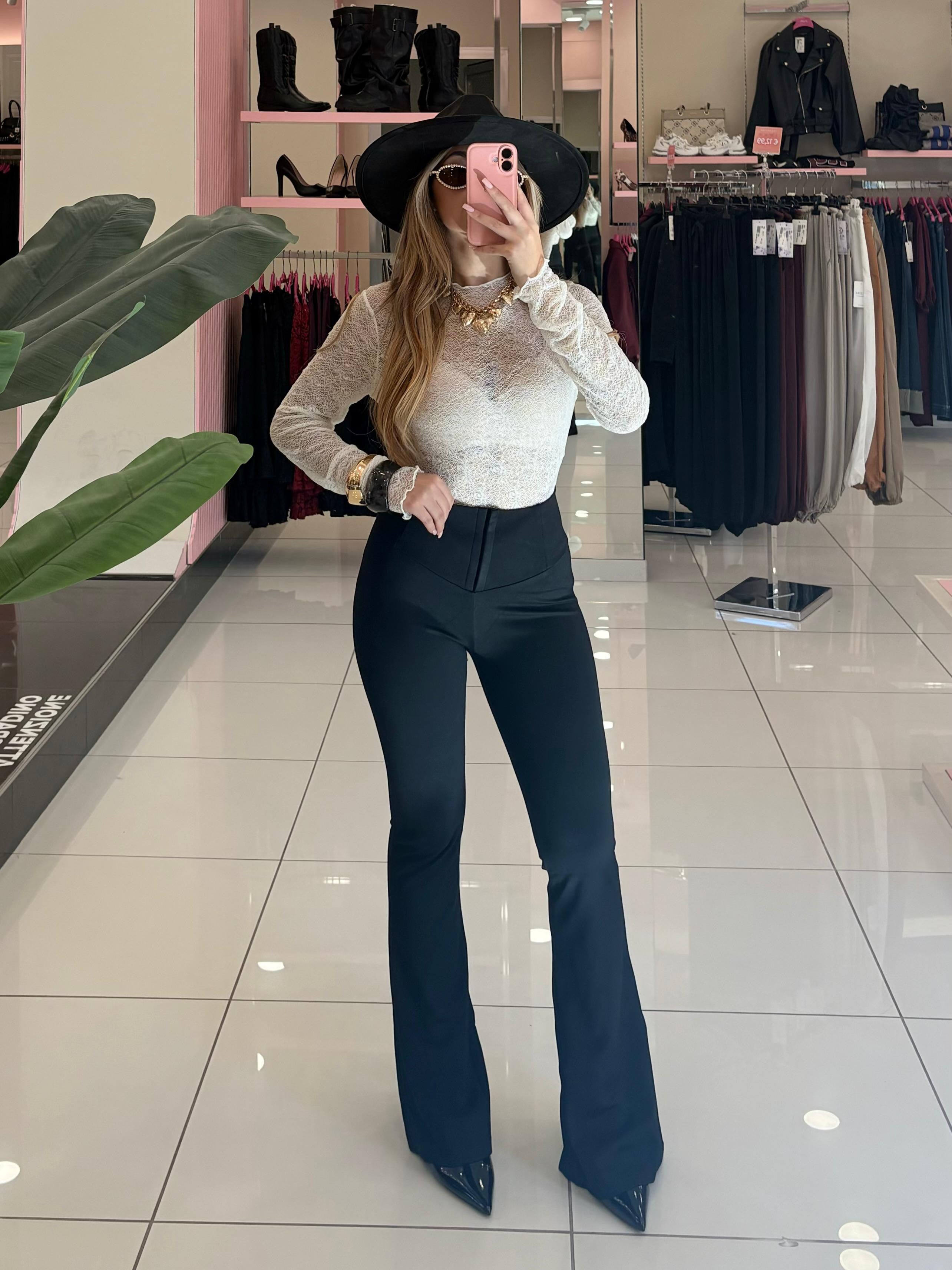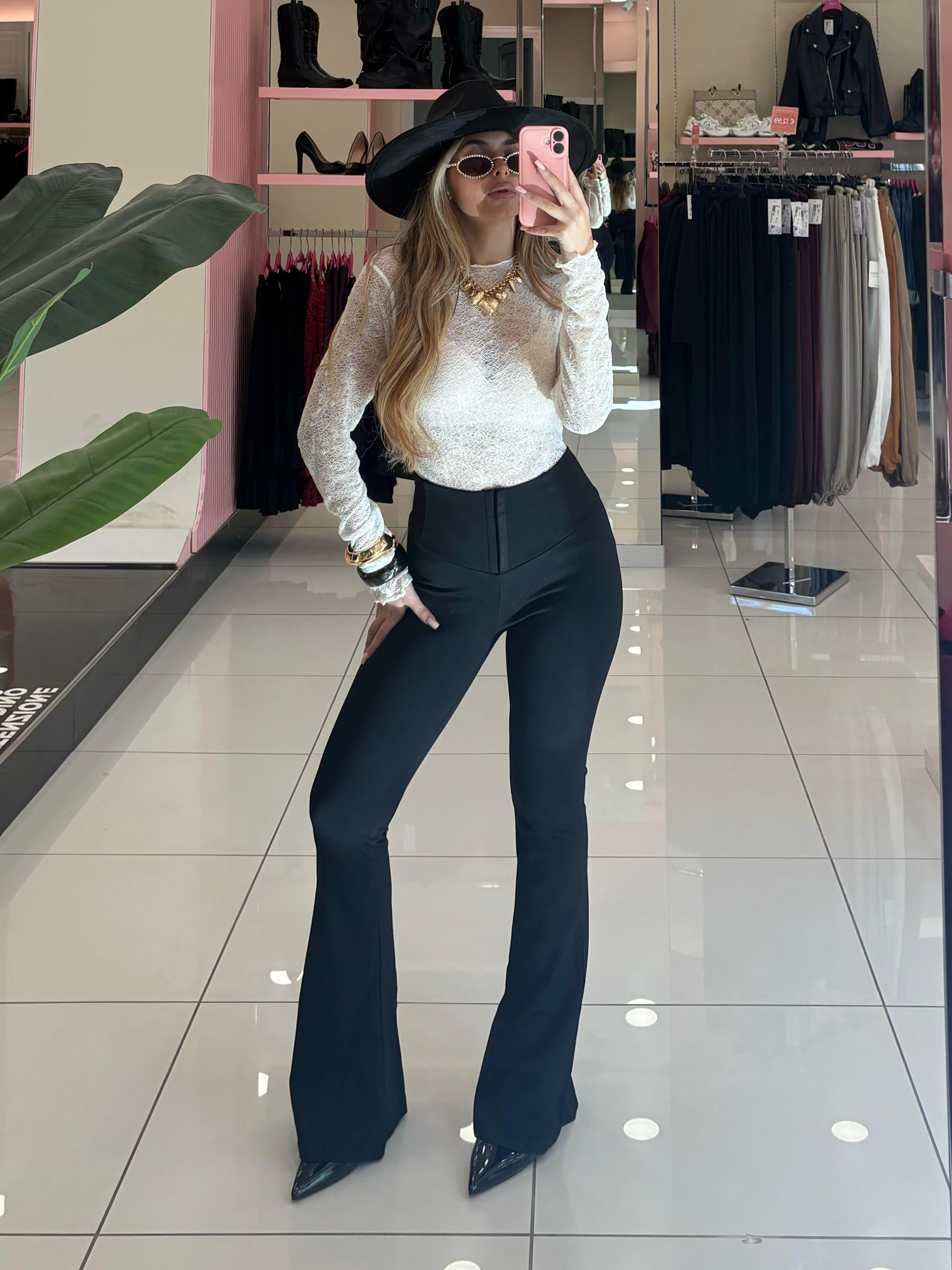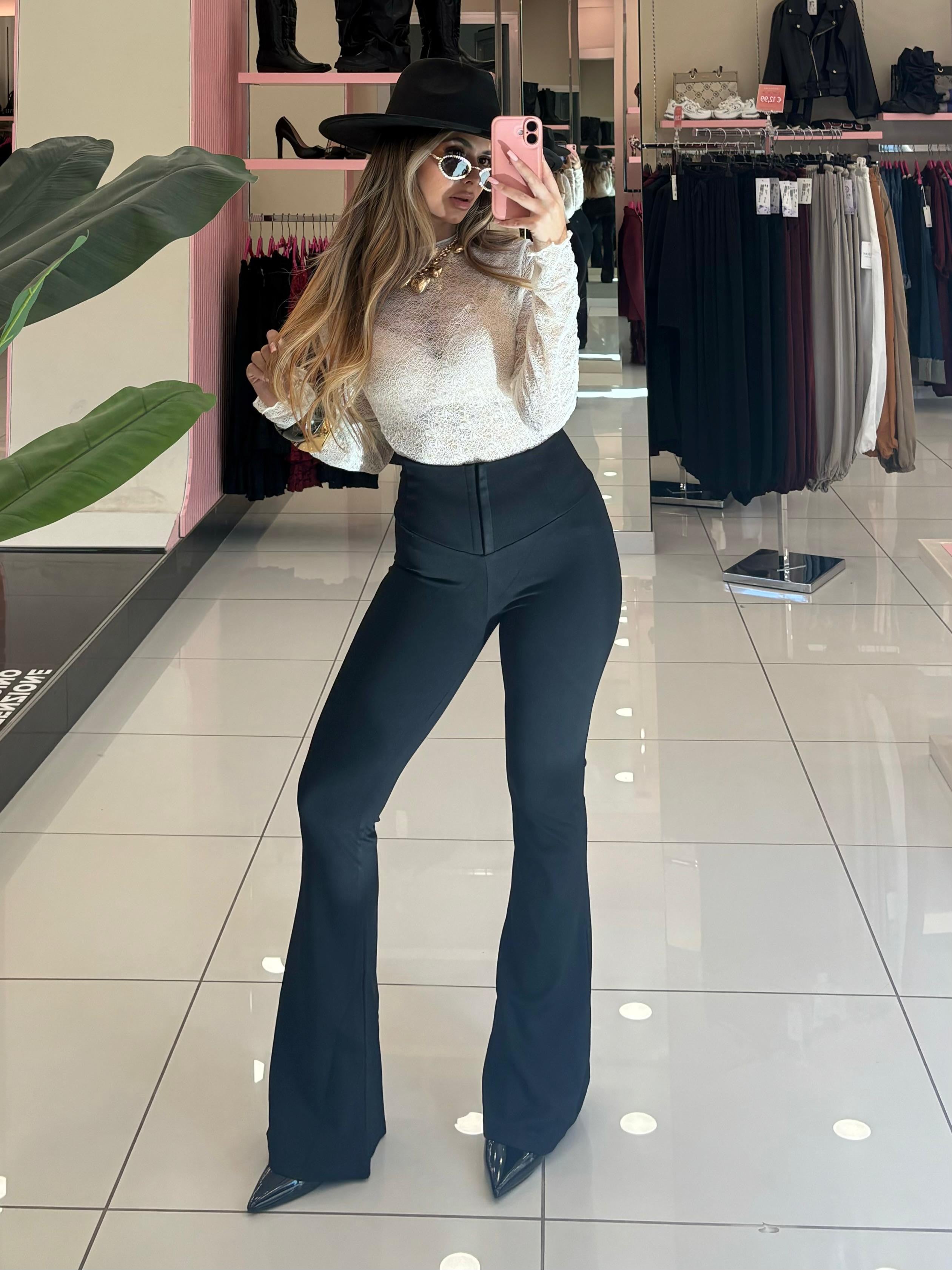 Leggins contenitivo a zampa, chiusura con ferretti che fascia e modella