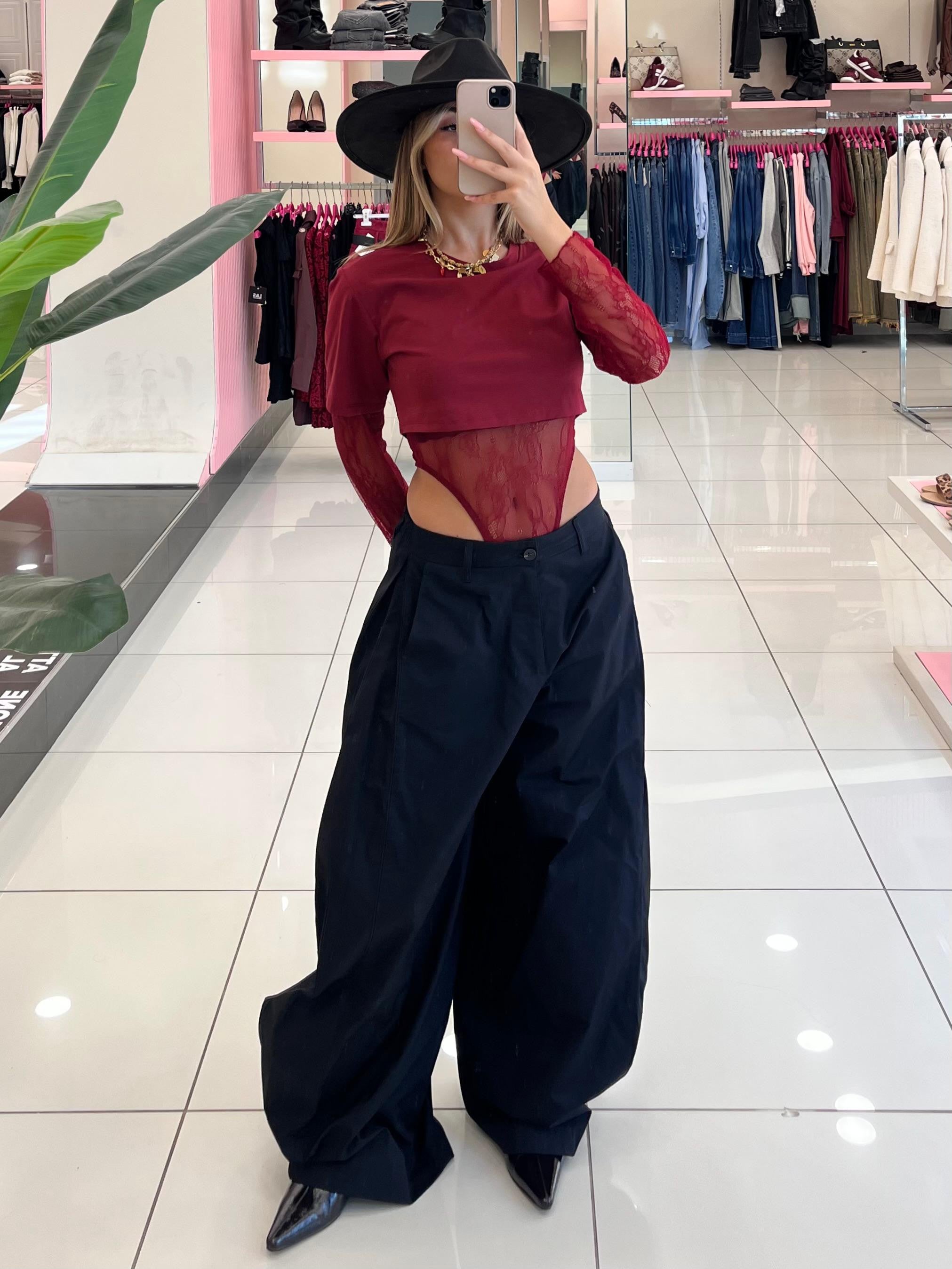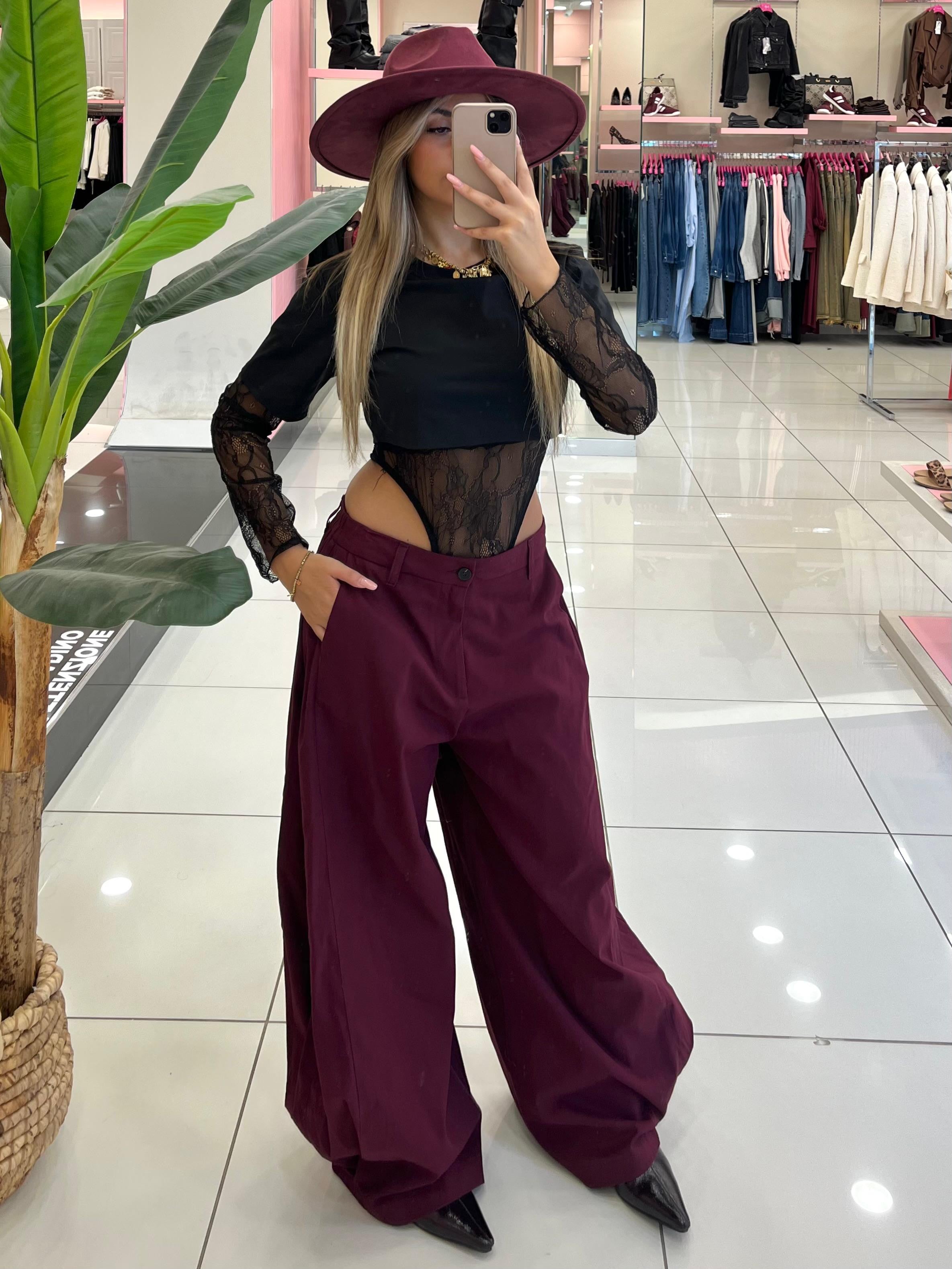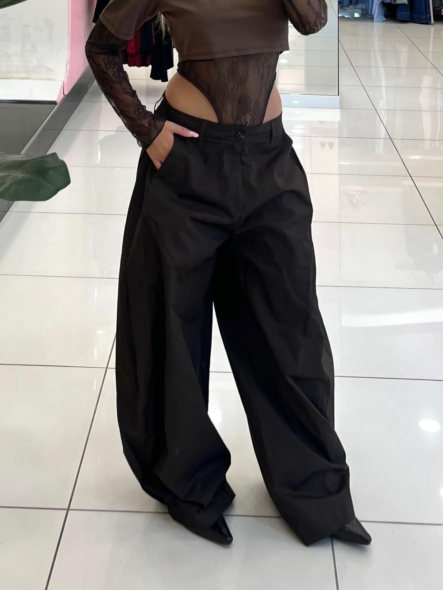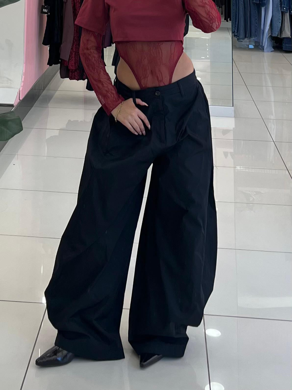 Pantalone in tessuto con tasche bottone e pences , modello ballon