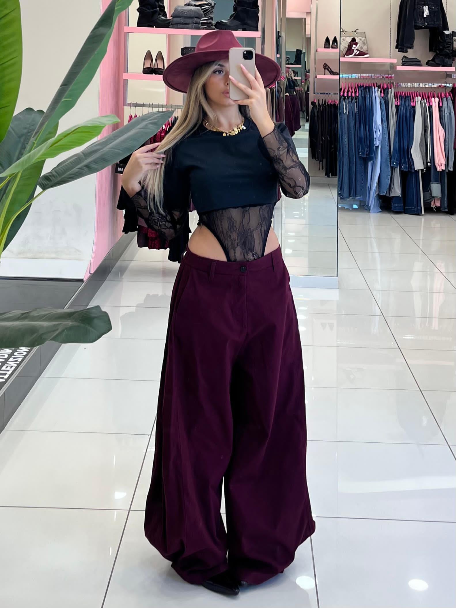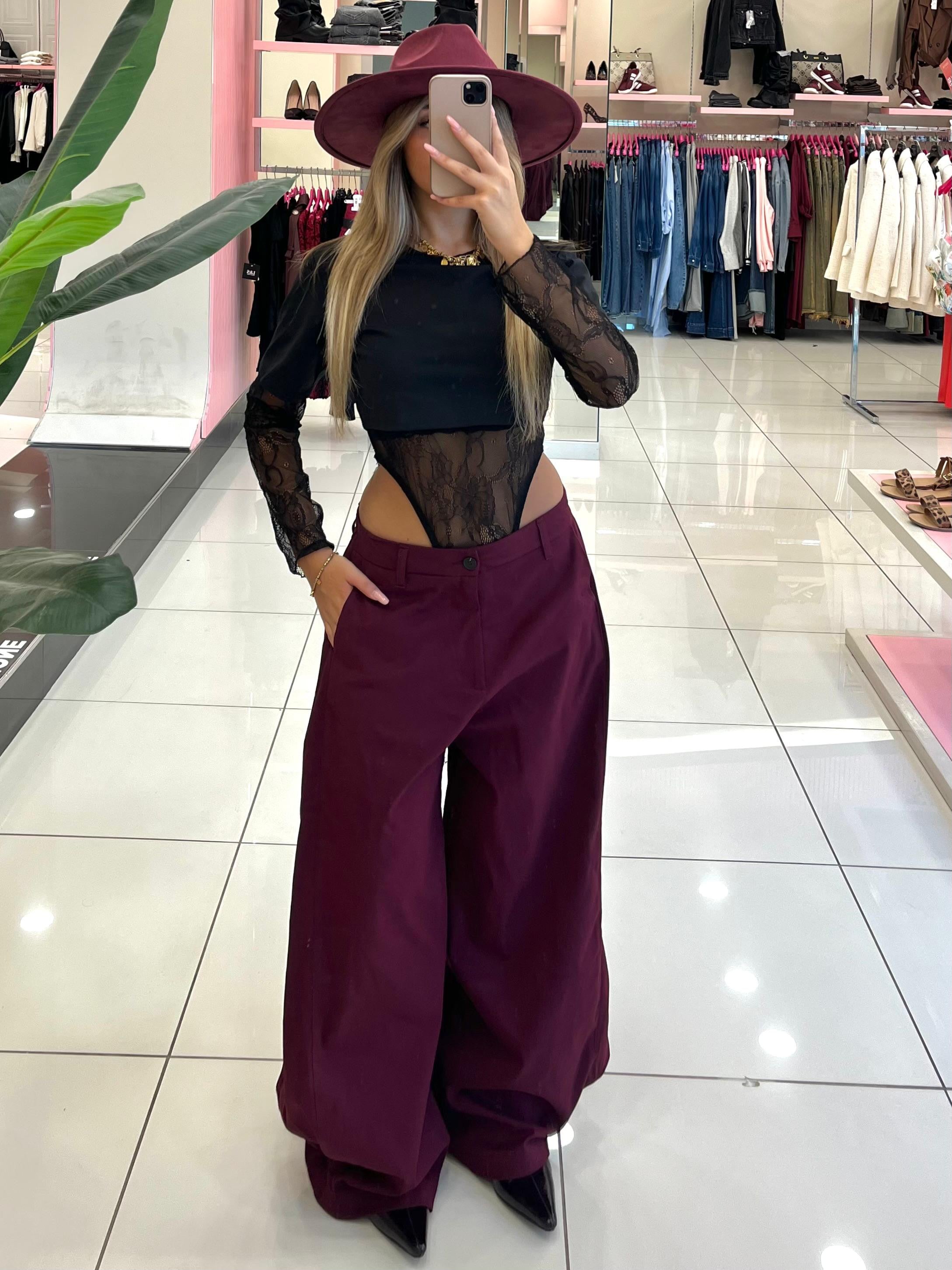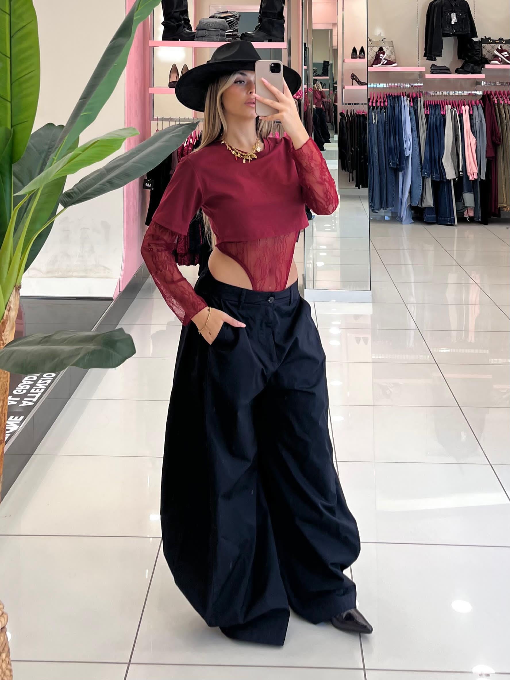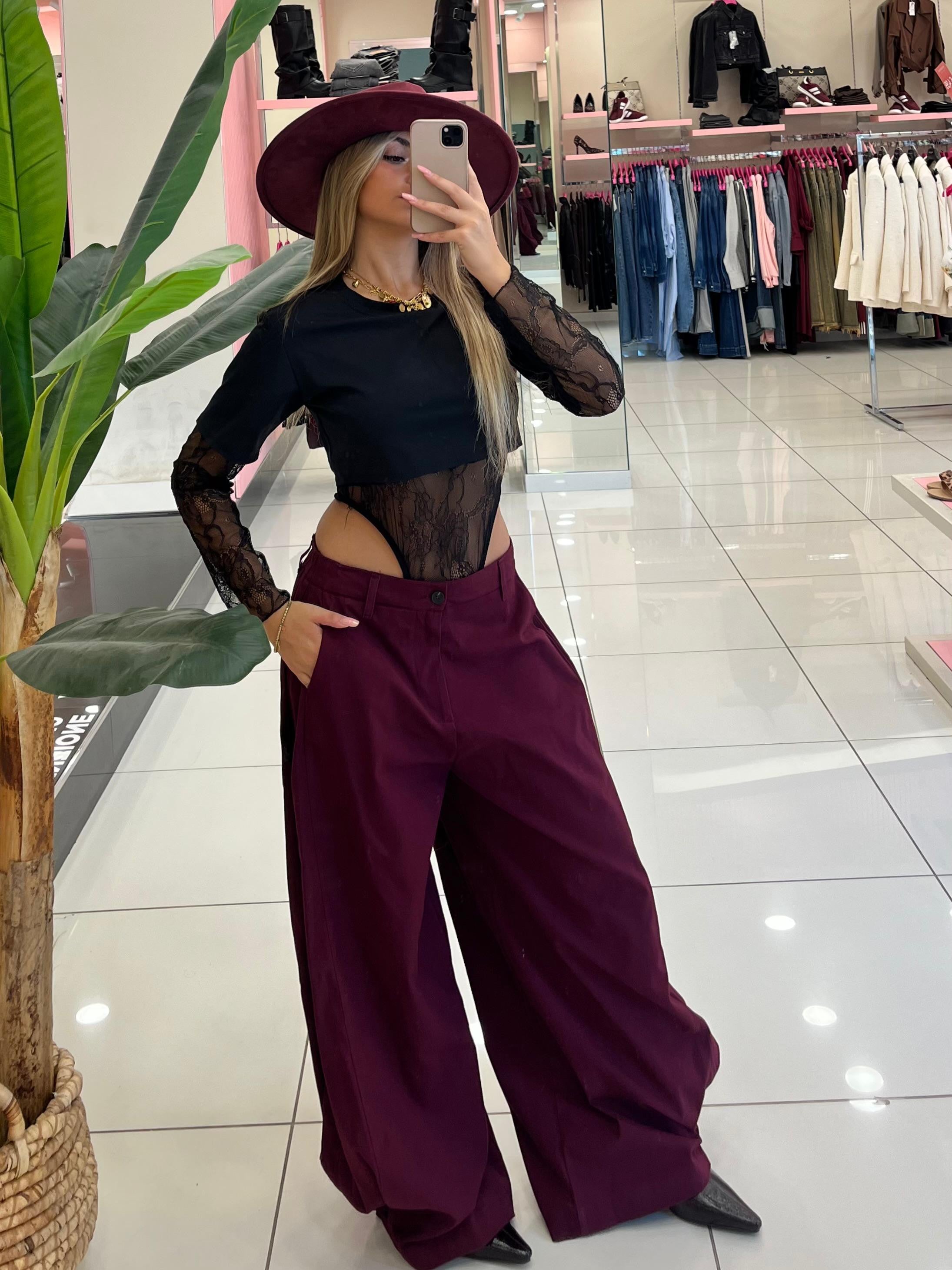 Pantalone in tessuto con tasche bottone e pences , modello ballon
