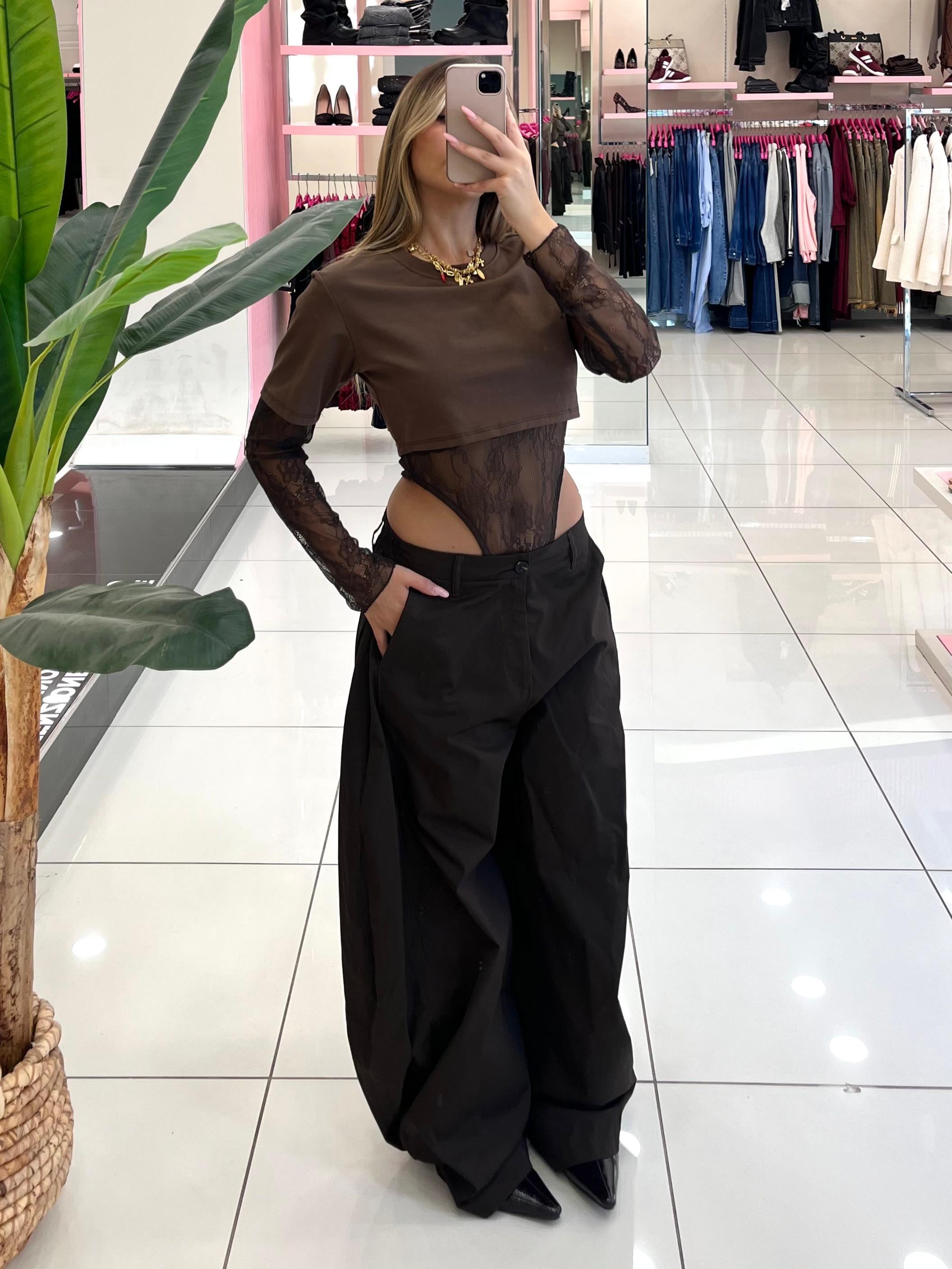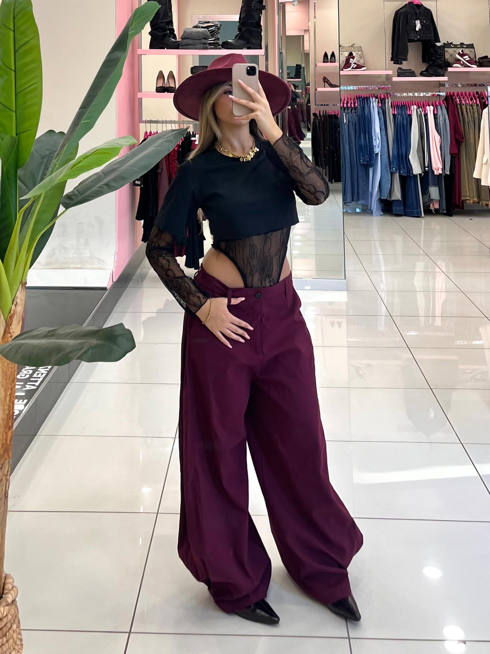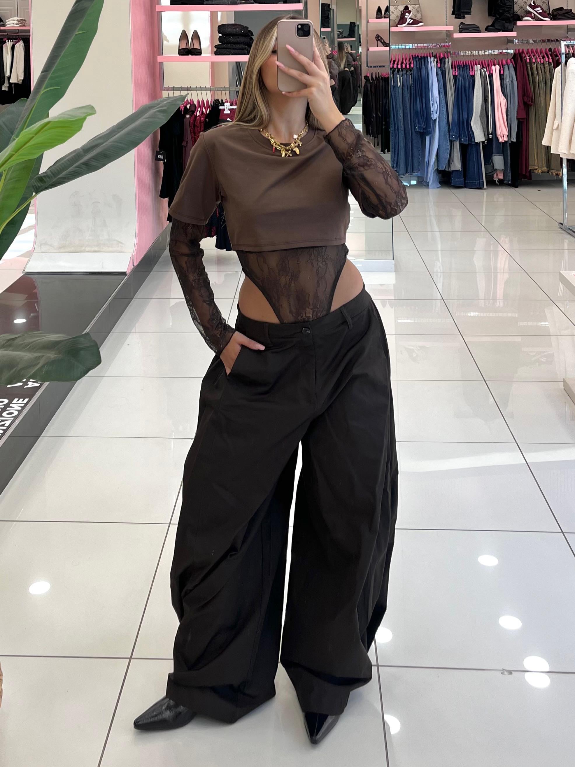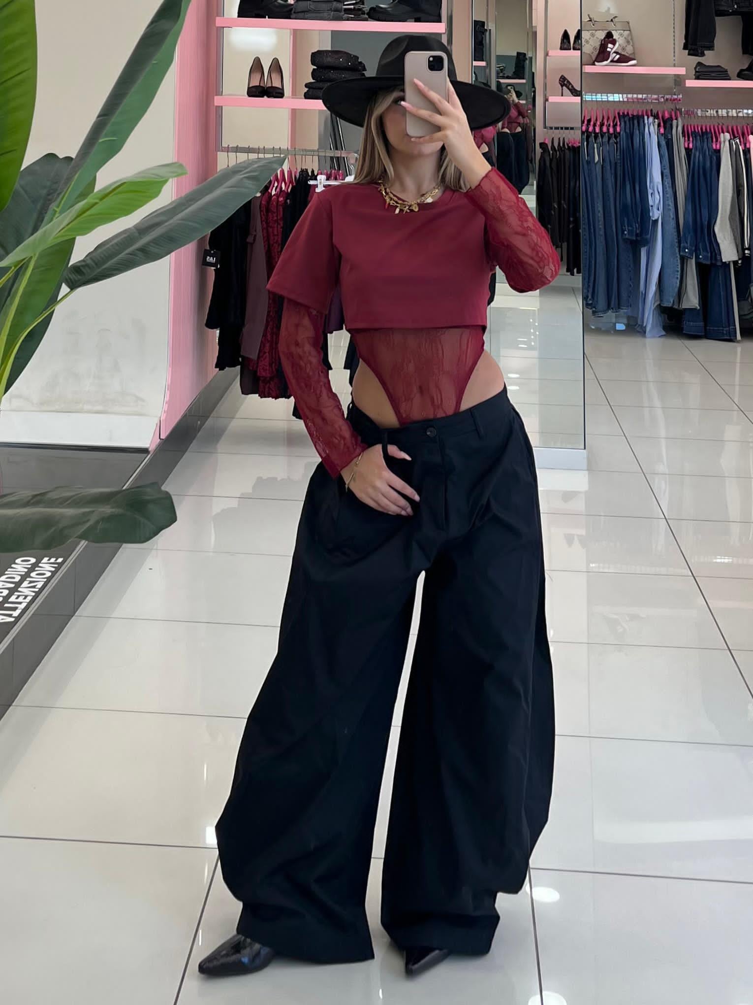 Pantalone in tessuto con tasche bottone e pences , modello ballon