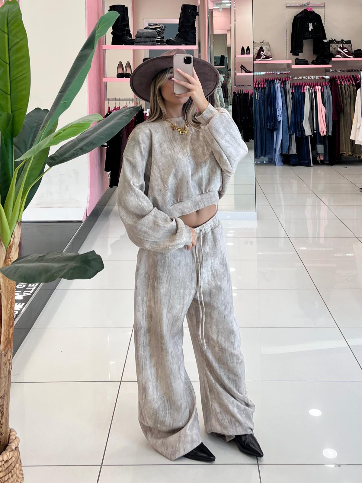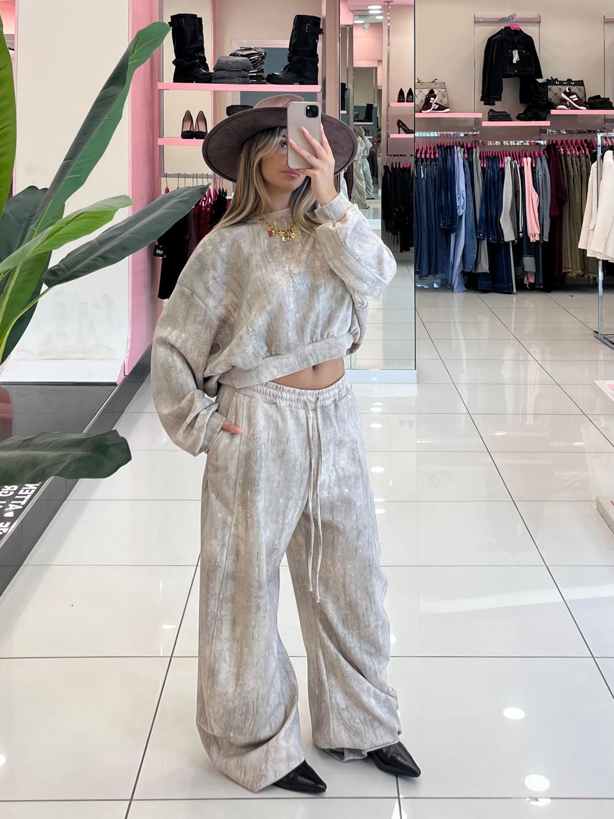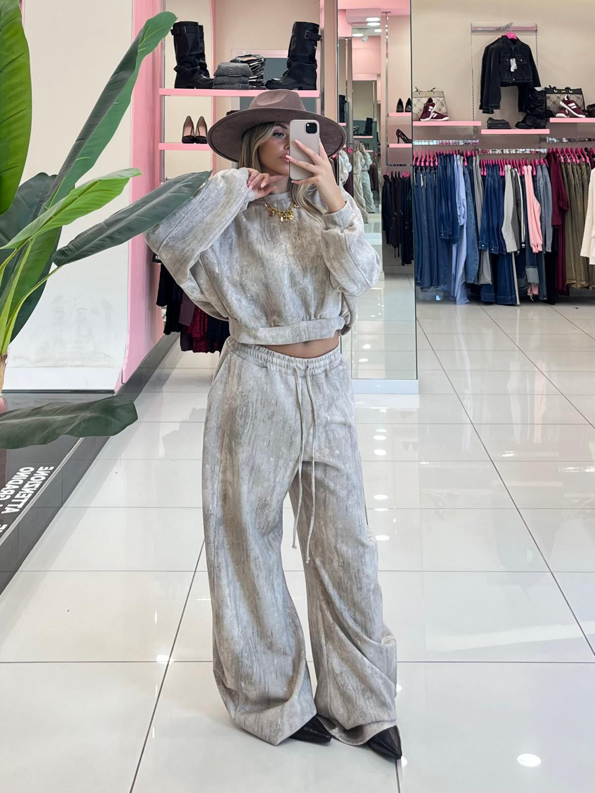 Completo tuta lumina a fantasia composto da: felpa girocollo e pantalone ballon con elastico in vita regolabile e tasche